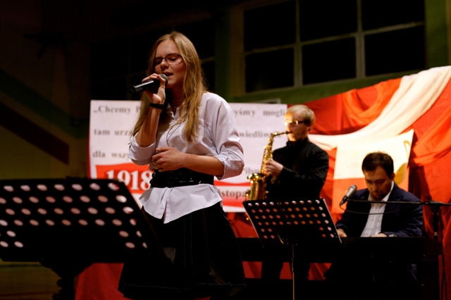 W atmosferze zadumy, w półmroku przy nikłym blasku płomyków, można było oddać się zadumie i śpiewowi pieśni, których teksty wyświetlane były na ekranie oraz w formie śpiewników. Podczas całego wieczoru narrację prowadziła Pani w-ce Dyrektor Zespołu Szkół Pani Wioletta Derda, która zaprosiła też do zabrania głosu kilku gości, w związku z czym można było wysłuchać krótkich wypowiedzi Pani Urszuli Całusińskiej, Pani Marioli Tomczyk i ks. Proboszcza Pawła Grenia. Wzniosły wieczór wypełniony pięknym słowem mówionym i śpiewanym wpisującym się w pamięć wszystkich słuchaczy, zakończył występ Pana Dyrektora Gminnego Ośrodka Kultury Krzysztofa Dryndy, który wykonał ponadczasową piosenkę Marka Grechuty, pt. „Wolność”. Pamięć o narodowych bohaterach to nasz obowiązek! Liczymy na to, że każdego roku będziemy mogli świętować takie dni.