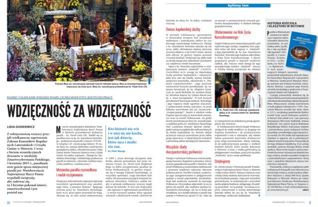 W numerze 14 z dnia 5.04.2015 artykuł „Pozostały owoc Jego Świętej służby”