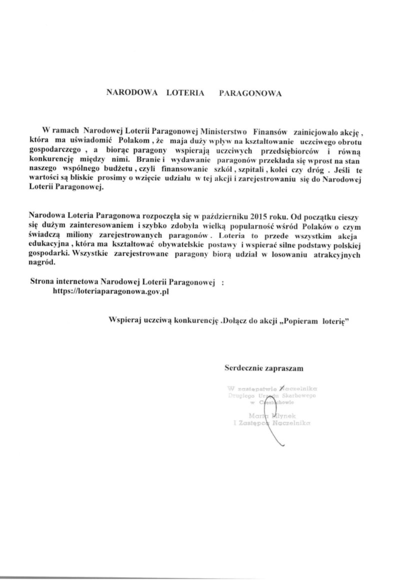 Ministerstwo zachęca również do wzięcia udziału w „Narodowej Loterii Paragonowej”.