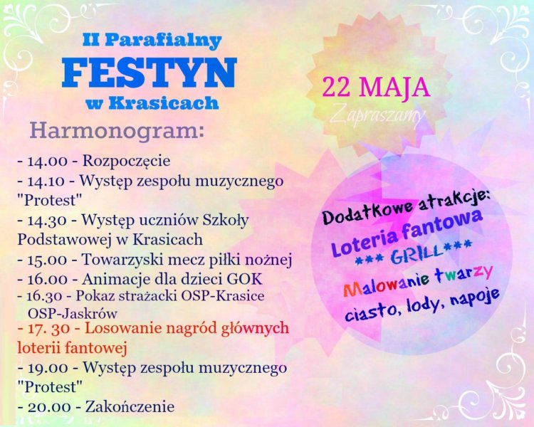 3. Natomiast w Krasicach odbędzie się w niedzielę II Festyn Parafialny. Start od godz.14.