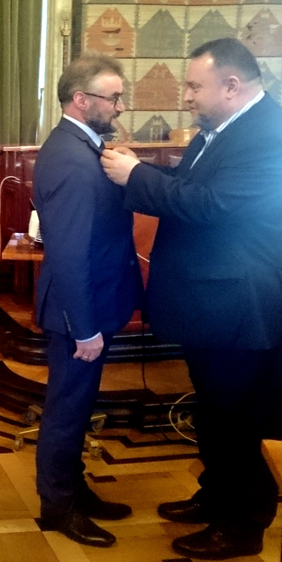 Na Sali Obrad Rady Miasta Krakowa Adam Markowski, Przewodniczący Związku Gmin Jurajskich, odebrał odznakę Honoris Gratia.