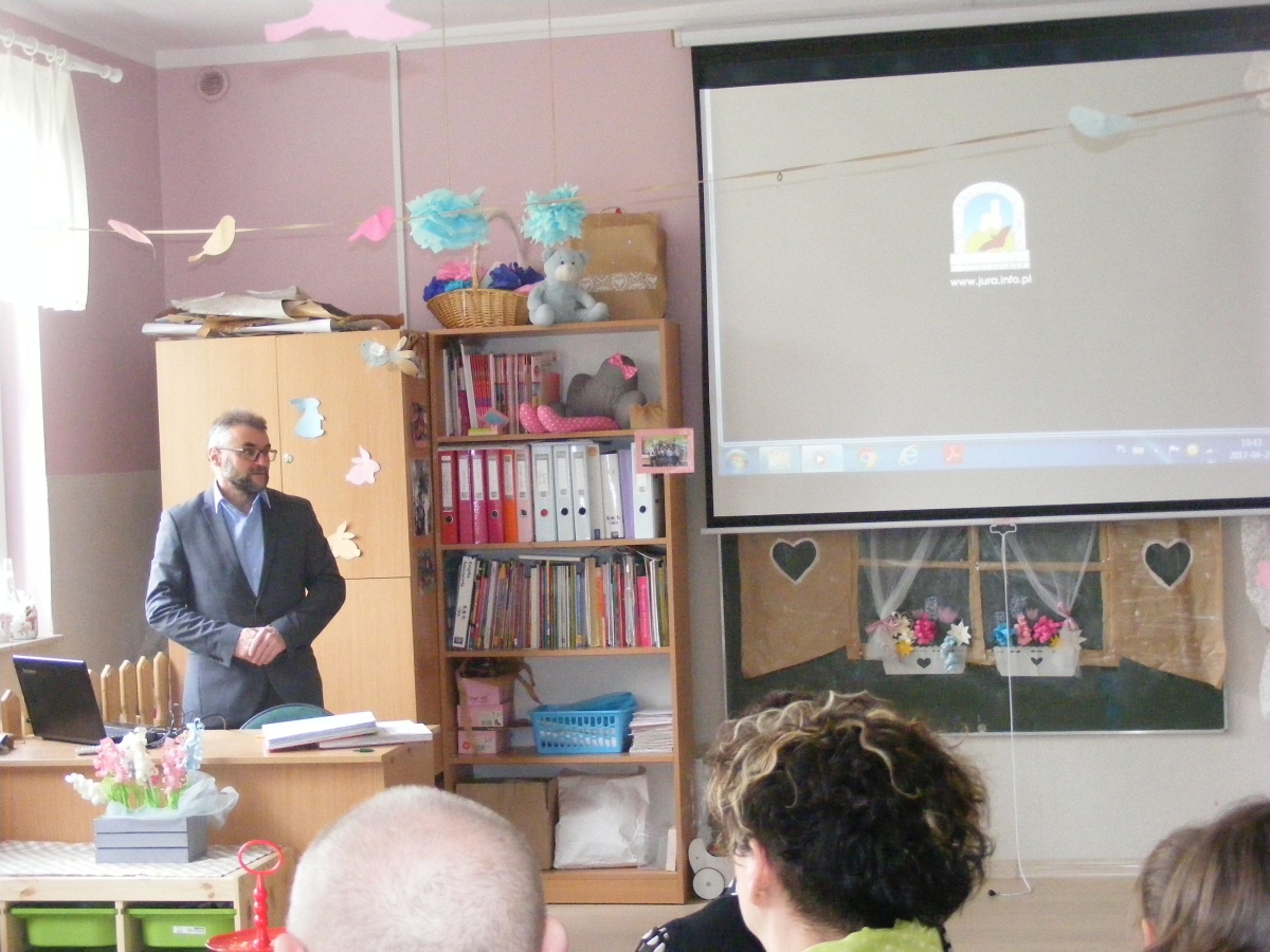 W czasie przerwy uczestnicy wysłuchali i obejrzeli prezentację multimedialną dotyczącą Jury, przygotowaną prze pana Adama Markowskiego – prezesa zarządu Związku Gmin Jurajskich. Wszyscy mogli również posilić się wiosennymi kanapkami, ciastem i owocami.