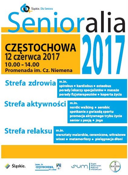 W imieniu Marszałka Województwa Śląskiego Wojciecha Saługi zapraszamy na Senioralia Wojewódzkie, które odbędą się 12 czerwca o godz. 10.00 w Częstochowie na Promenadzie im. Czesława Niemena ( w pobliżu amfiteatru).