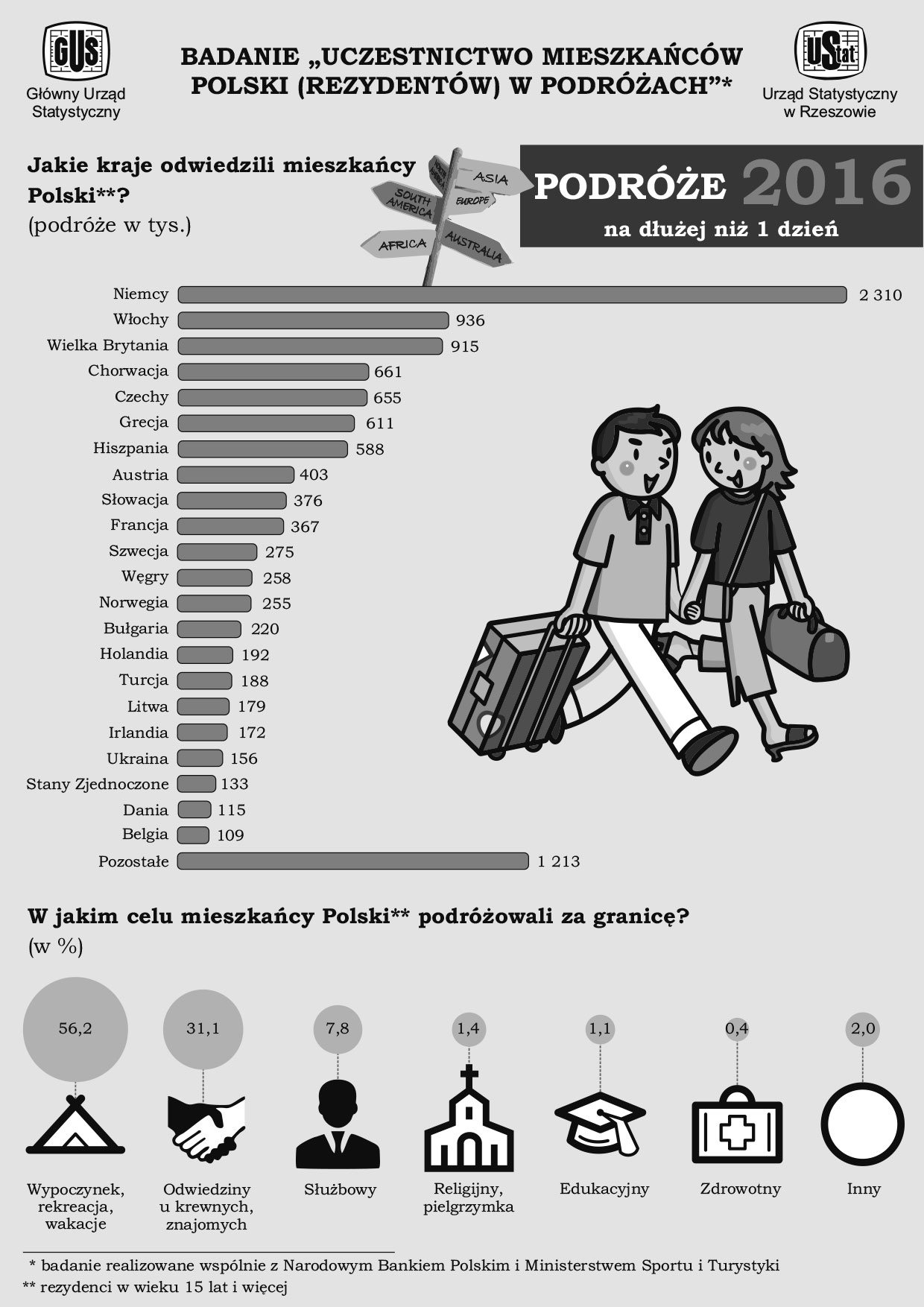 Celem tego badania jest zebranie danych o krajowych i zagranicznych wyjazdach członków gospodarstw domowych w II kwartale 2017 roku. Badanie dostarczy kompleksowej wiedzy o skali uczestnictwa mieszkańców Polski w podróżach, rodzajach wykorzystywanych usług turystycznych, poziomie wydatków związanych z podróżami.