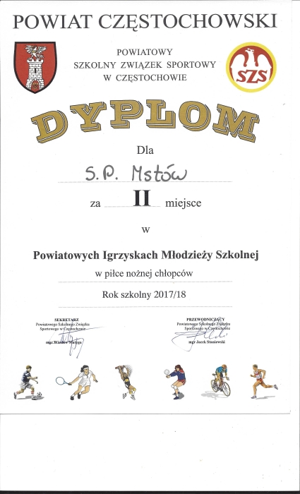Piłkarska reprezentacja Szkoły Podstawowej w Mstowie (kategoria klasy gimnazjalne i VII klasa SP) zajęła drugie miejsce w Igrzyskach Młodzieży Szkolnej Powiatu Częstochowskiego!