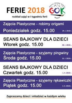 Przedstawiamy plan zajeć dla dzieci i młodzieży na ferie zimowe, przygotowany przez mstowski GOK.