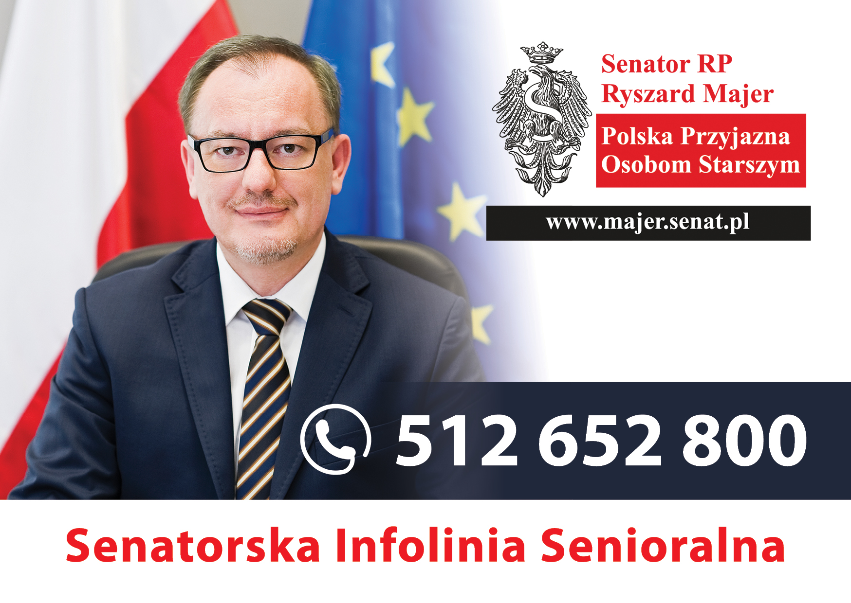 W ramach kampanii „Polska przyjazna Osobom Starszym” działa Senatorska Infolinia Senioralna. Czynna jest w każdy poniedziałek w godz. 8:00 -16:00 pod nr.tel. 512 652 800.