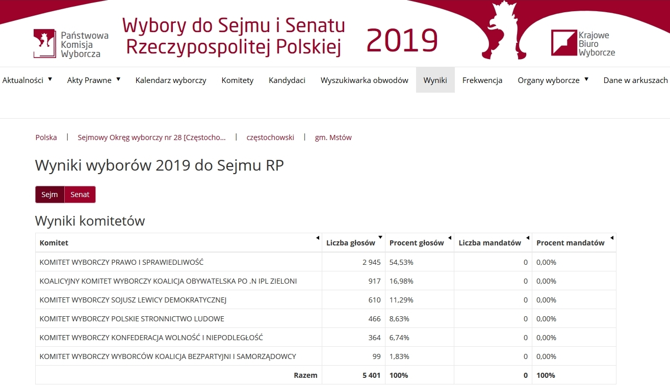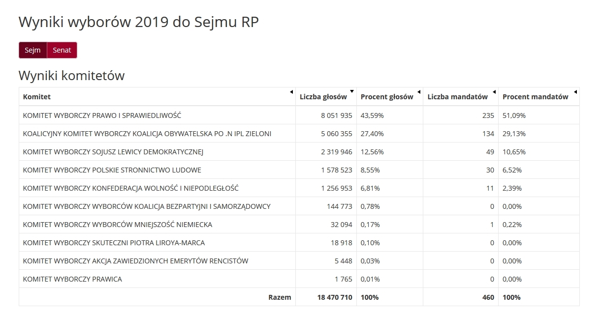 Wszystkie wyniki wyborów parlamentarnych są dostępne na stronie wybory.gov.pl.