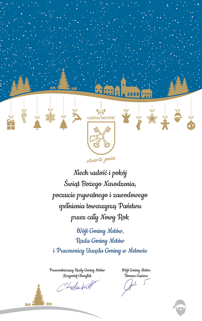 Radosnych Świąt Bożego Narodzenia oraz szczęścia i pomyślności w każdym dniu nadchodzącego Nowego Roku.