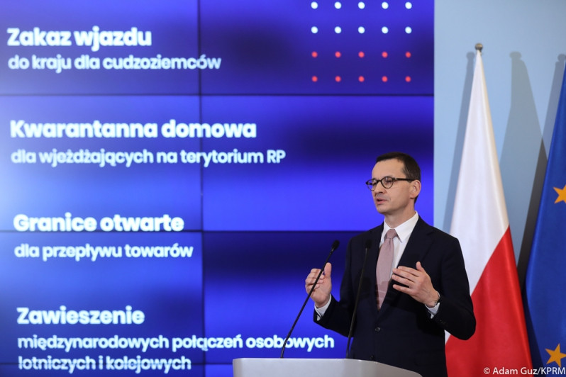 - W obliczu światowej pandemii najważniejsze słowa to bezpieczeństwo i odpowiedzialność. Musimy wykonać wszystkie możliwe kroki, żeby bezpieczeństwo zdrowotne Polaków było utrzymane - zaznaczył premier Mateusz Morawiecki podczas ogłoszenia decyzji rządu. Jak wyjaśnił Prezes Rady Ministrów, zgodnie z ustawą stan zagrożenia epidemicznego umożliwia nakładanie dodatkowych ograniczeń, które są niezbędne, by powstrzymać rozprzestrzenię się wirusa.