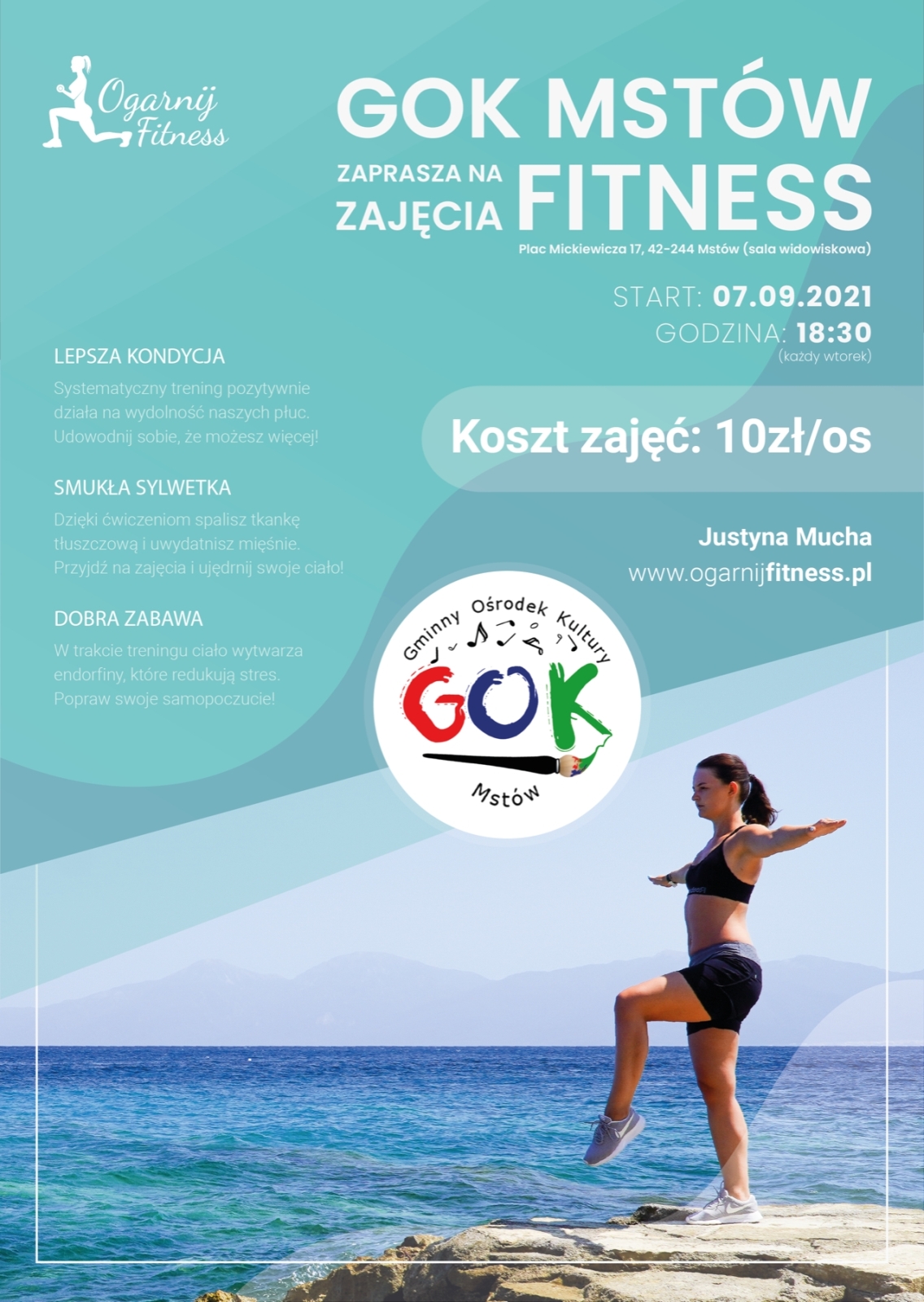 Zapisy dokonywane będą na pierwszych zajęciach u prowadzącej Pani Justyny Muchy. Zapraszamy wszystkich chętnych na salę widowiskową mstowskiego GOKu.