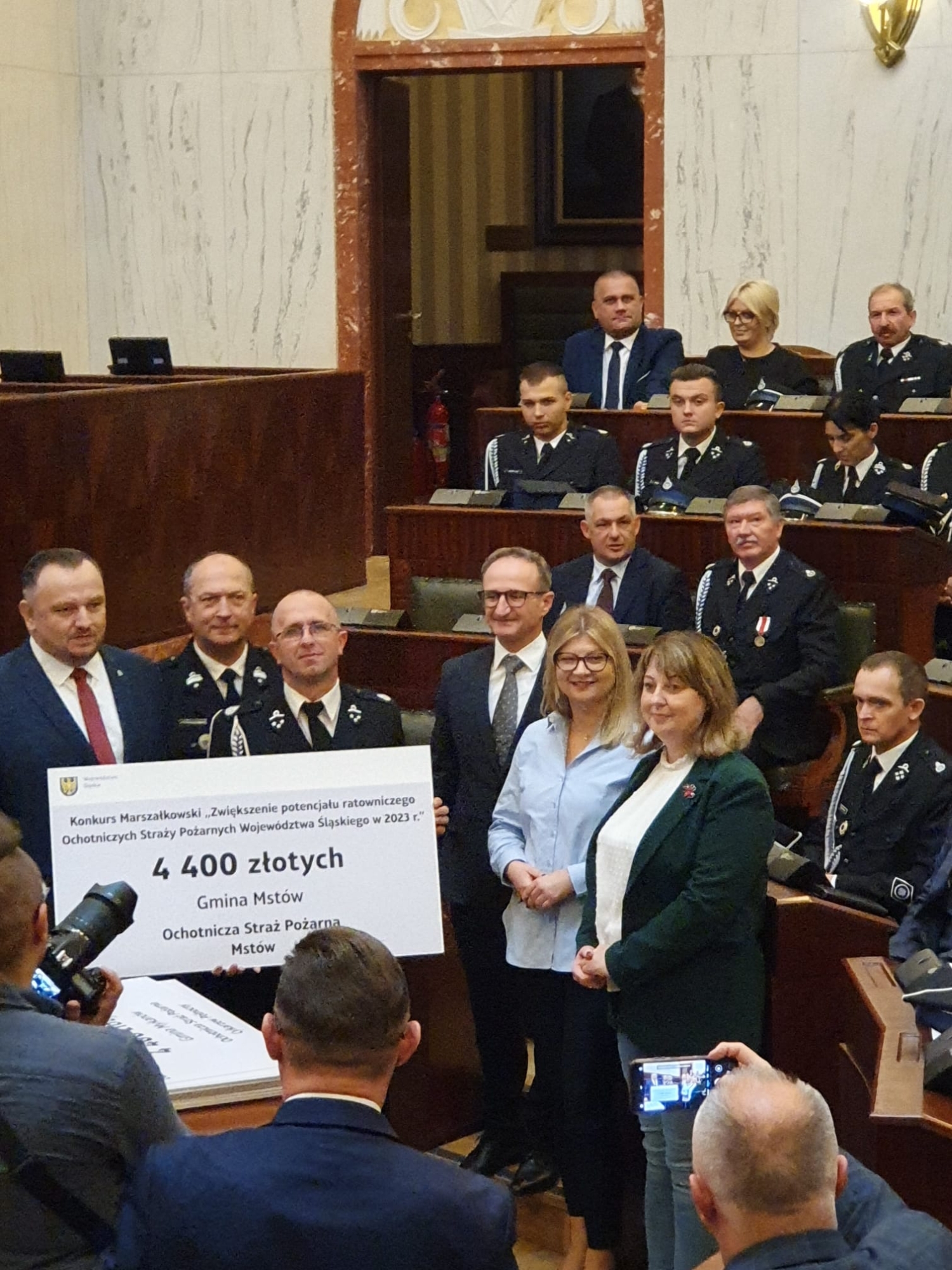 W Sali Sejmu Śląskiego w Katowicach odbyło się uroczyste przekazanie czeków na dofinansowanie w ramach Marszałkowskiego Konkursu „Zwiększenie potencjału ratowniczego Ochotniczych Straży Pożarnych Województwa Śląskiego w 2023 roku”.