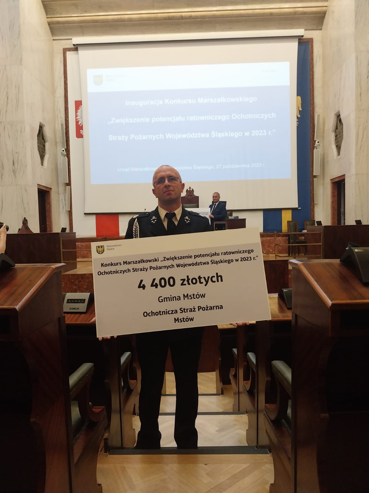 >> Jedną z jednostek OSP z terenu województwa śląskiego, które otrzymały dofinansowanie w ramach tego konkursu, była jednostka OSP Mstów - reprezentowana w Katowicach przez Naczelnika dh Marcina Czapskiego.