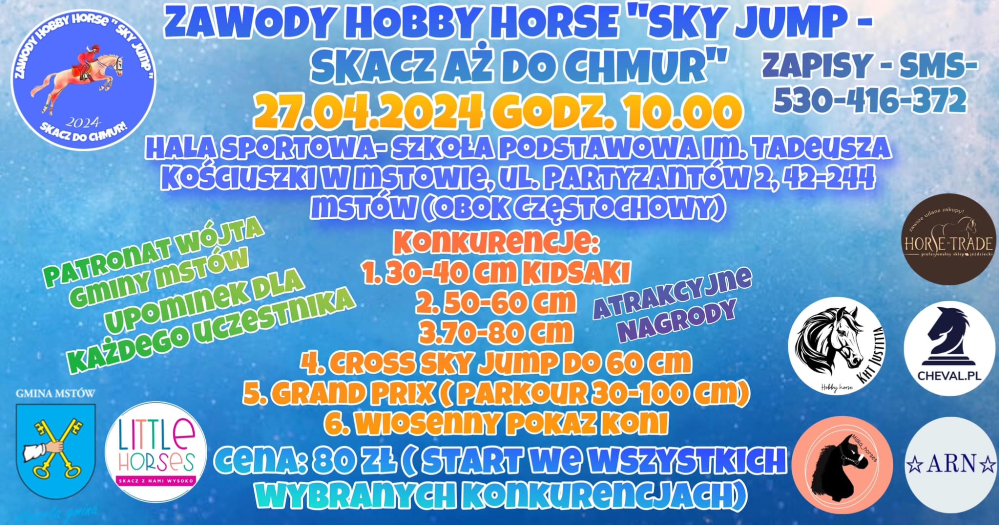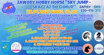 27 kwietnia hala sportowo-widowiskowa w Szkole Podstawowej im. Tadeusza Kościuszki w Mstowie od rana tętniła życiem! Wszystko za sprawą zawodów „Hobby Horse Sky Jump”, które w tym dniu tam się odbywały.