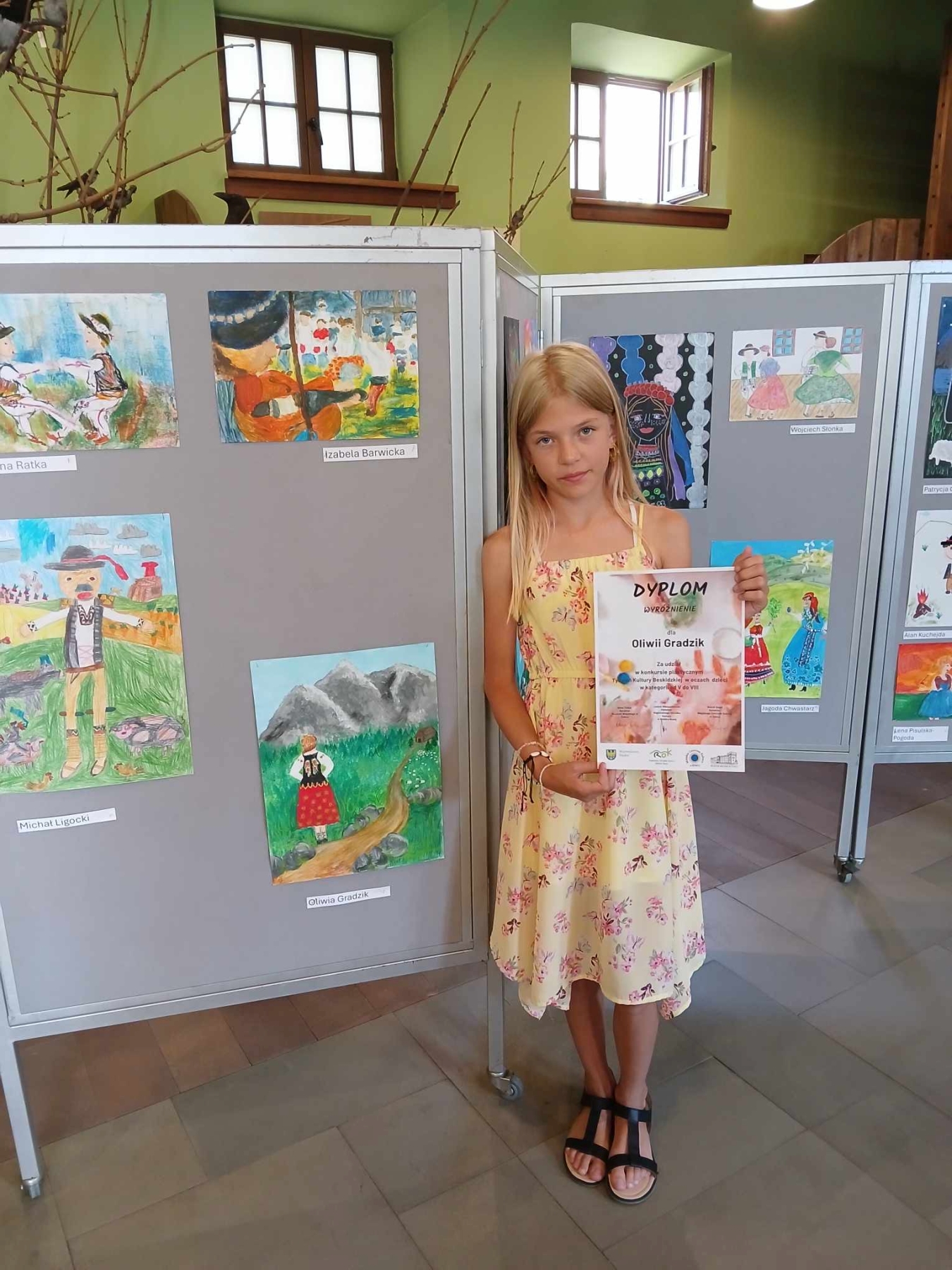 >> Oliwia Gradzik otrzymała Wyróżnienie za wykonanie pracy plastycznej podczas 61. Tygodnia Kultury Beskidzkiej. Praca ta została wystawiona na wystawie pokonkursowej na Zamku w Żywcu. /Opiekun: nauczyciel historii, Wioletta Derda/.