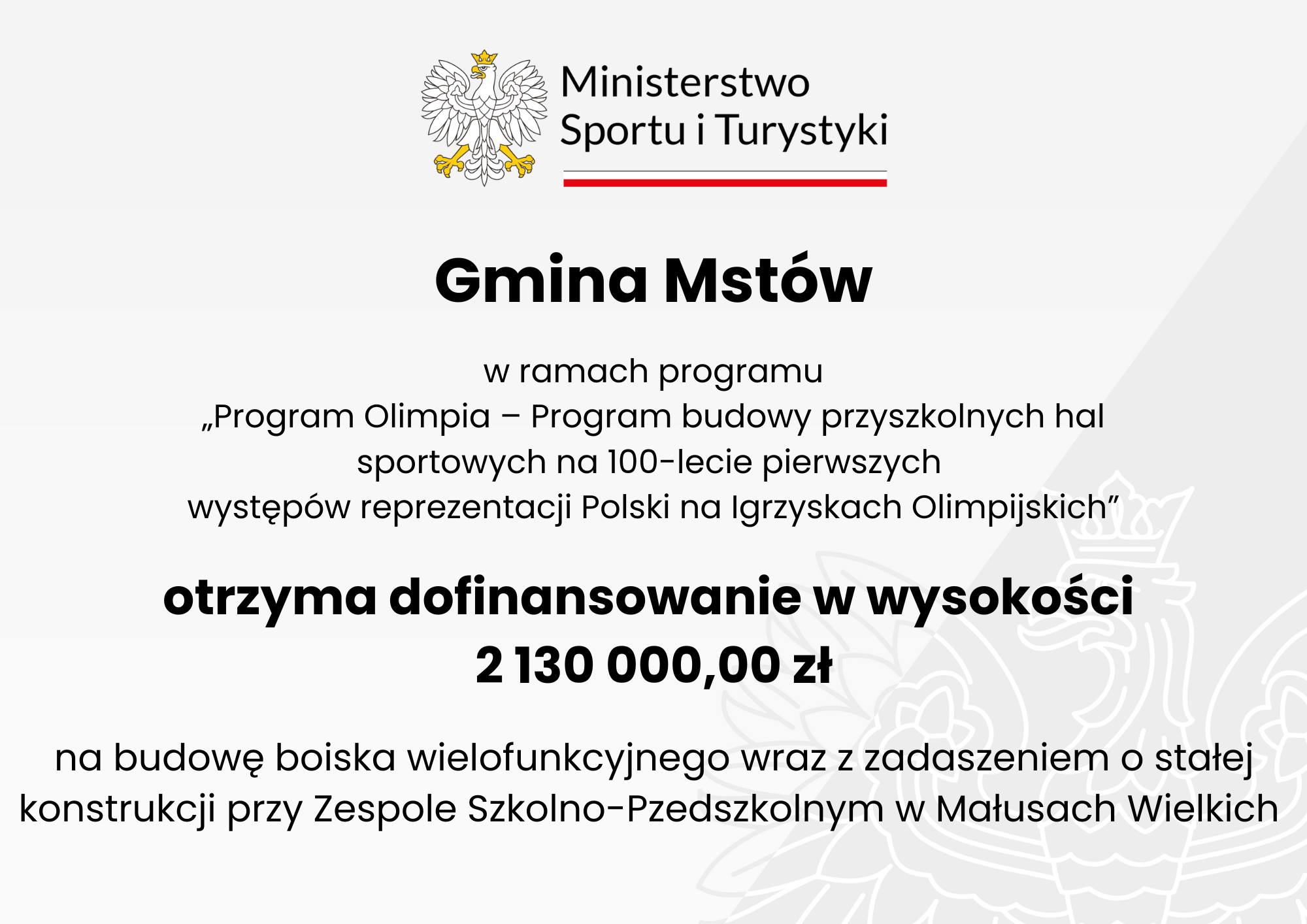 „Budowa boiska wielofunkcyjnego wraz z zadaszeniem o stałej konstrukcji przy Zespole Szkolno-Przedszkolnym w Małusach Wielkich” (w formule „zaprojektuj i wybuduj”)