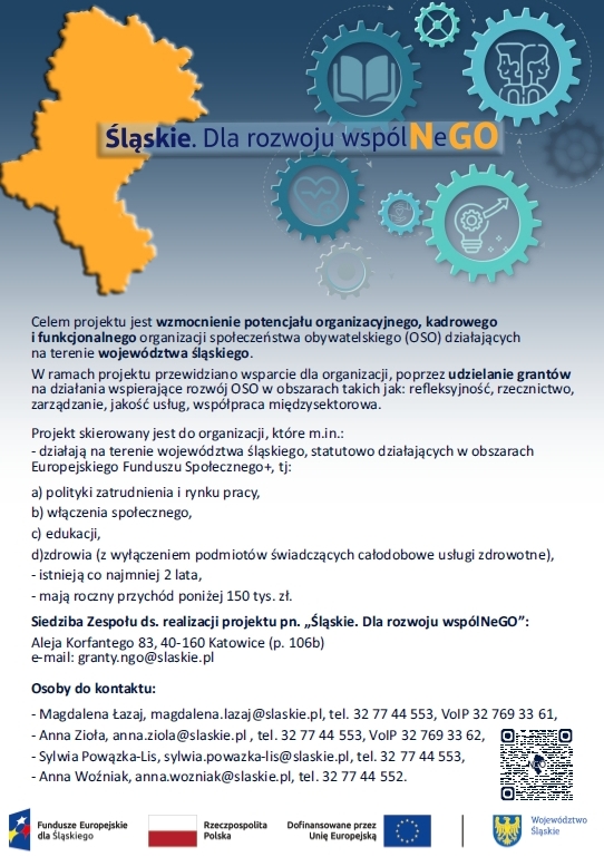Departament Projektów Regionalnych Urzędu Marszałkowskiego w Katowicach realizuje projekt grantowy „Śląskie. Dla rozwoju wspólNeGO”, skierowany do organizacji społecznych i obywatelskich, działających na rzecz mieszkańców.