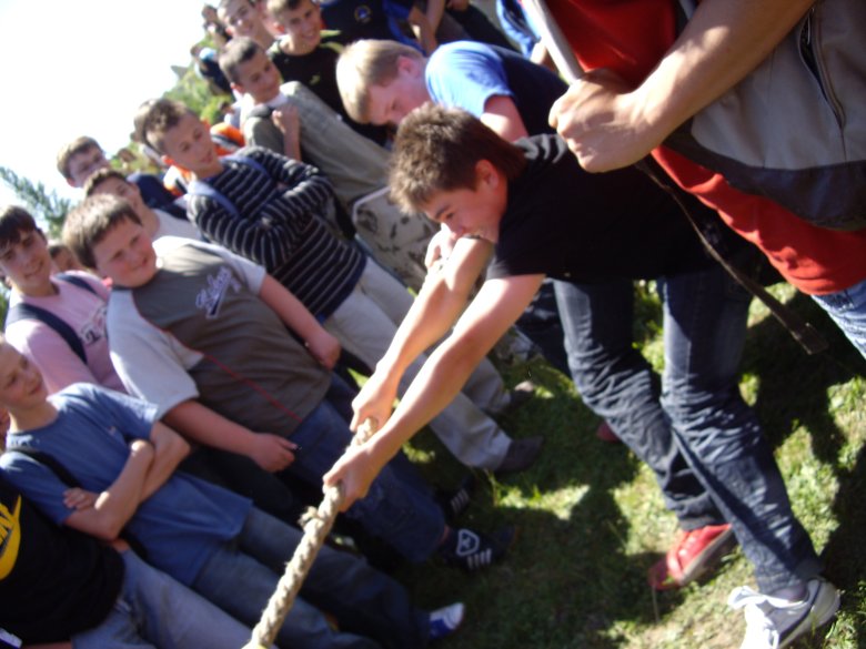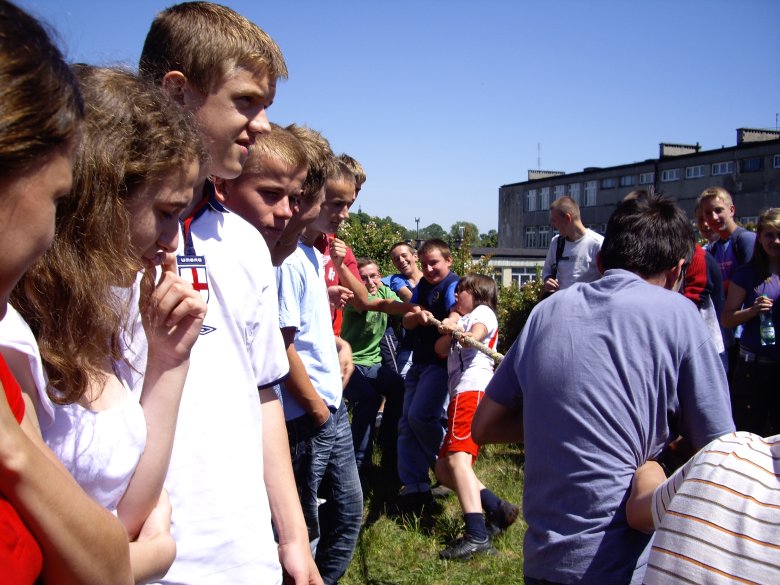 Dużo emocji dostarczyła kolejna konkurencja – „przeciąganie liny”. Reprezentanci każdej klasy mieli poważne zadanie - pokazanie siły i wytrwałości przed przeciwnikami i kolegami całego gimnazjum.