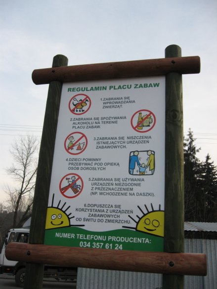 Każdy plac zabaw posiada regulamin oraz certyfikat bezpieczeństwa. Powyższe zestawy zostały zamontowane w Jaskrowie (na placu szkolnym), w Mstowie (na placu za kapliczką przy ul. Wolności), w Krasicach (na placu szkolnym), w Mokrzeszy (na placu szkolnym). W nadchodzącym 2009 roku zostanie zamontowane kolejne 8 zestawów.