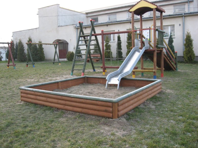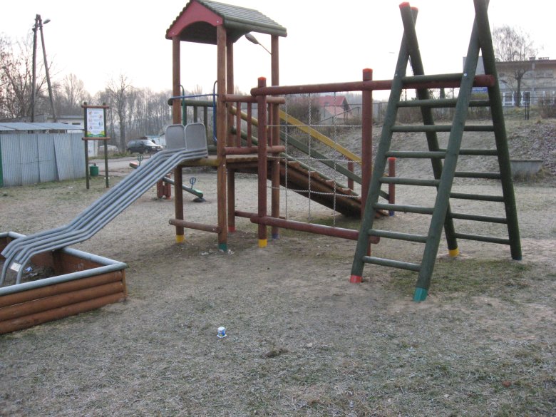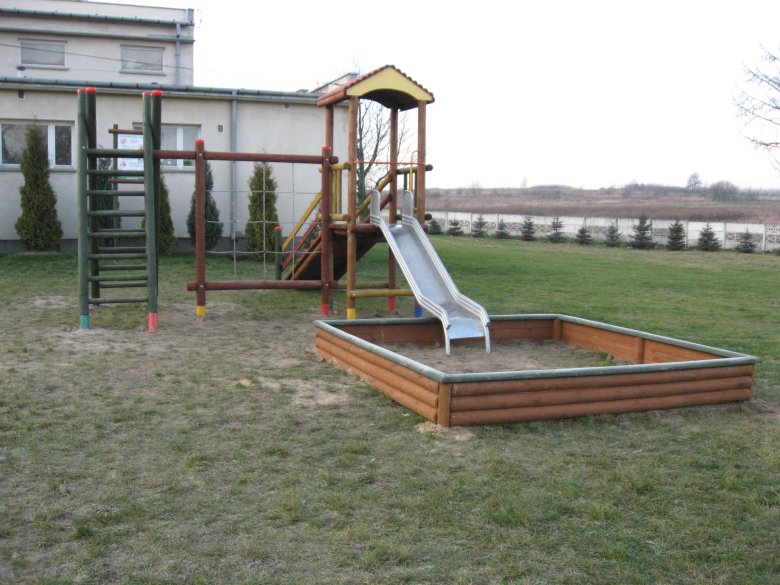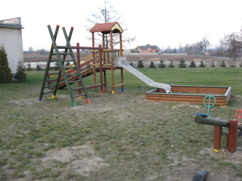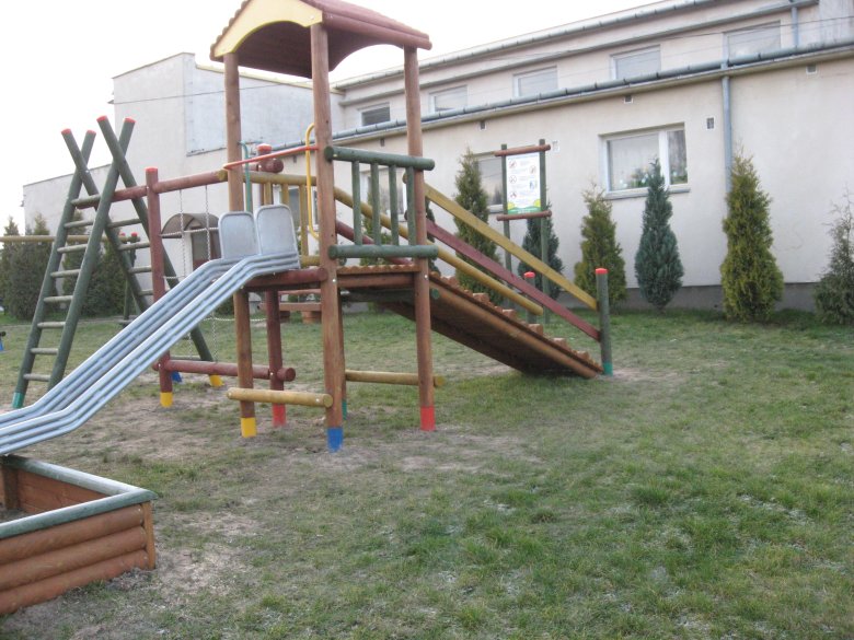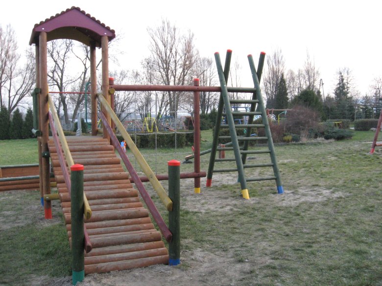 - zestaw zabawowy (w skład którego wchodzi wieża mała z dachem, zjeżdżalnia metalowa ze ślizgiem ze stali nierdzewnej, wejście na podest wieży – trap),
